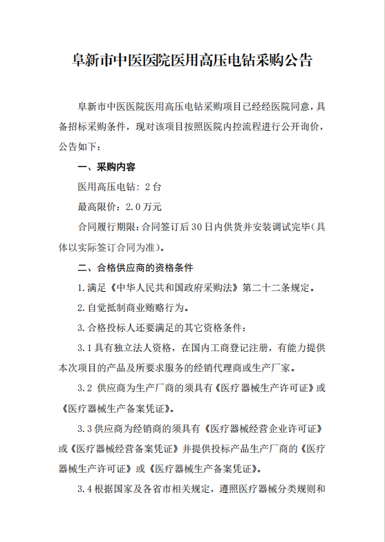 MK体育·(国际)官方网站医用高压电钻采购公告